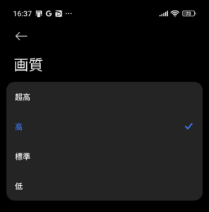 わたしが使っているスマホの設定には上記のような解像度選択はありません。