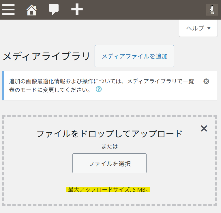 このブログを書いている Word press は、自動で画像ファイルのサイズを小さくするアドインが入っていますが、そもそもブログには5MB以上の画像はアップロードすることができません。